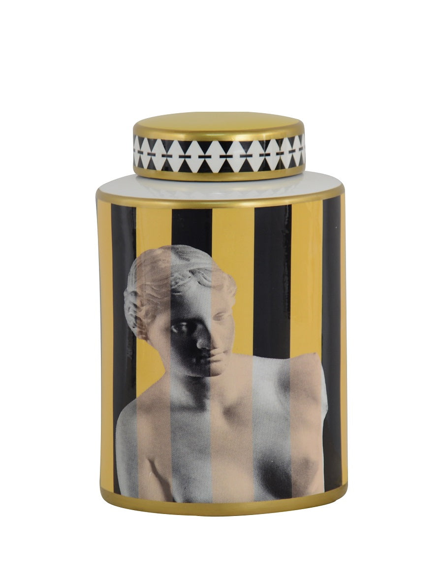 LIDDED JAR VENUS YELLOW/BLACK CERAMIC