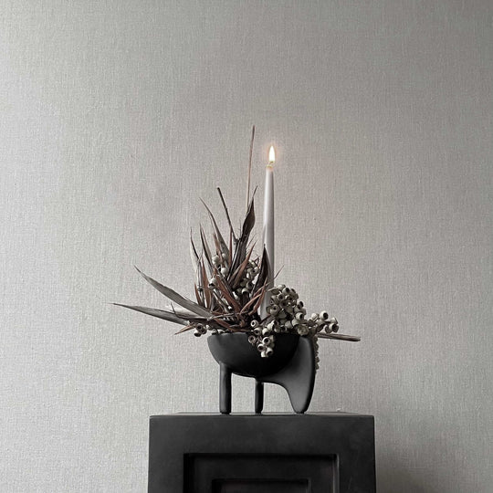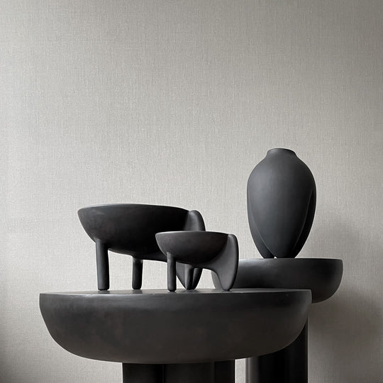 Wing is a sculptural collection of bowls that balances a sense of lightness with grounded presence. Featuring two wing-like forms supported by a single cylindrical leg, the design evokes floating in the air while maintaining stability. Cast from lightweight fiber concrete, Wing can be used as a container or a standalone art piece. Please note, it is not 100% waterproof.