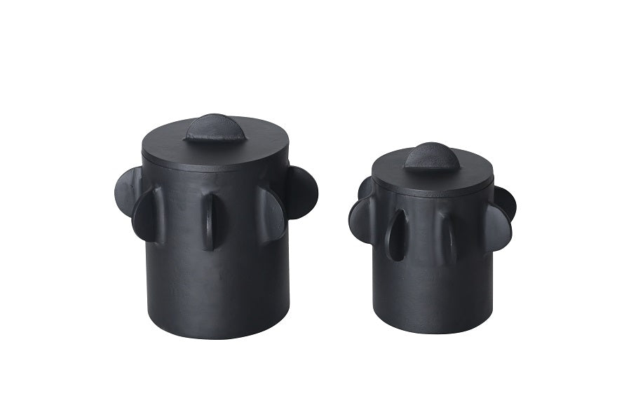 LIDDED JAR VENUS YELLOW/BLACK CERAMIC