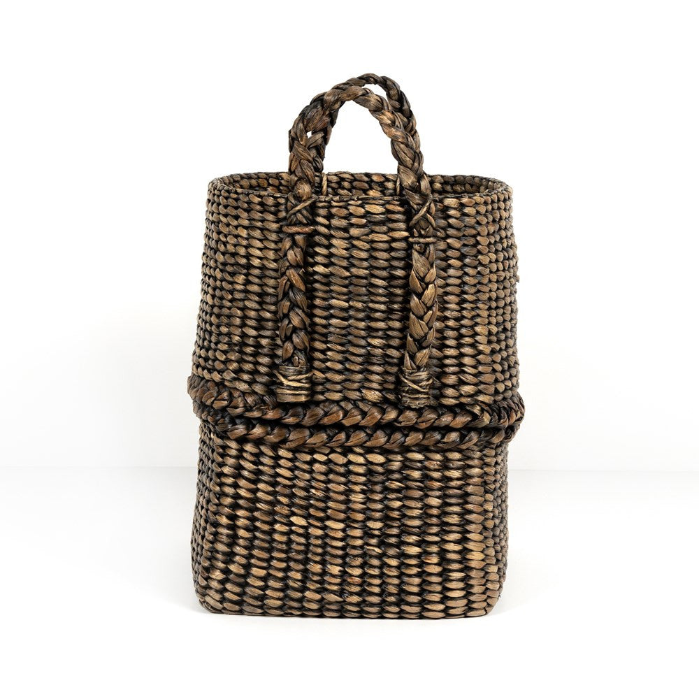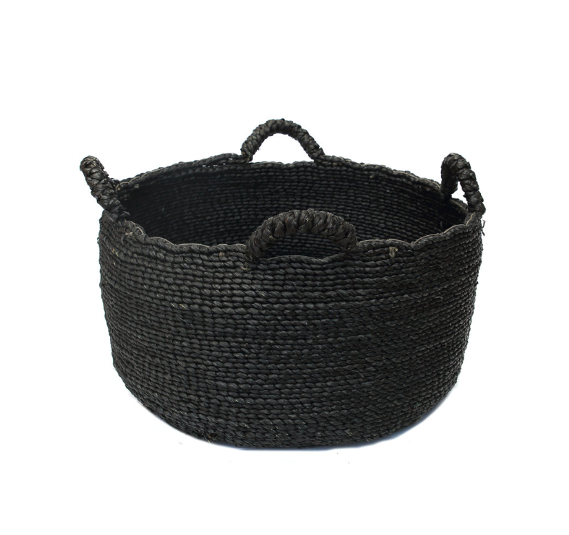 TIKA BASKET, BLACK & TAN WATER HYACINTH
