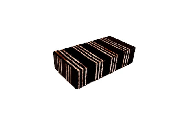 GREY AND WHITE STRIPED BOX MEDIUM 3"H. 8"L. 6"W
