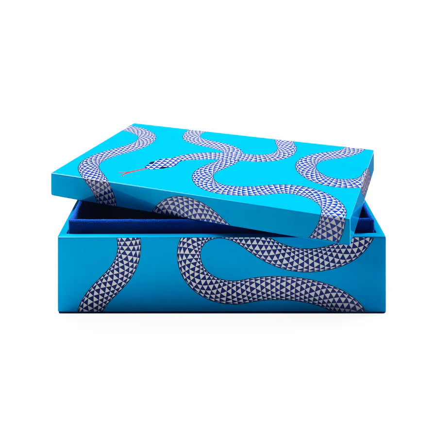 Featuring slithering serpents on a hand-finished, high-gloss backdrop, our Eden Lacquer Boxes are a chic and charming addition to your shelf, mantel, or tablescape. Keep your possessions handy but hidden. Available in three sizes for stashing, stacking, or making a stand-alone statement.