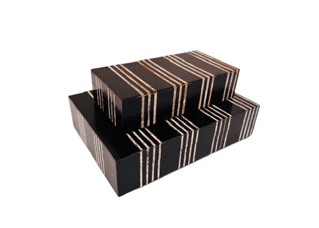 The Bone Black and White Box Small by A. Sanoma is a meticulously handcrafted piece that exudes individuality and refined artistry. Made from natural bone, each box is unique, showcasing the exceptional skill and craftsmanship behind its creation. Functional as well as decorative, it’s perfect for storing jewelry, keys, or small essentials, adding texture and elegance to coffee tables, shelves, or desks. Layer multiple sizes together to create a sophisticated, curated display that highlights its artisanal quality.