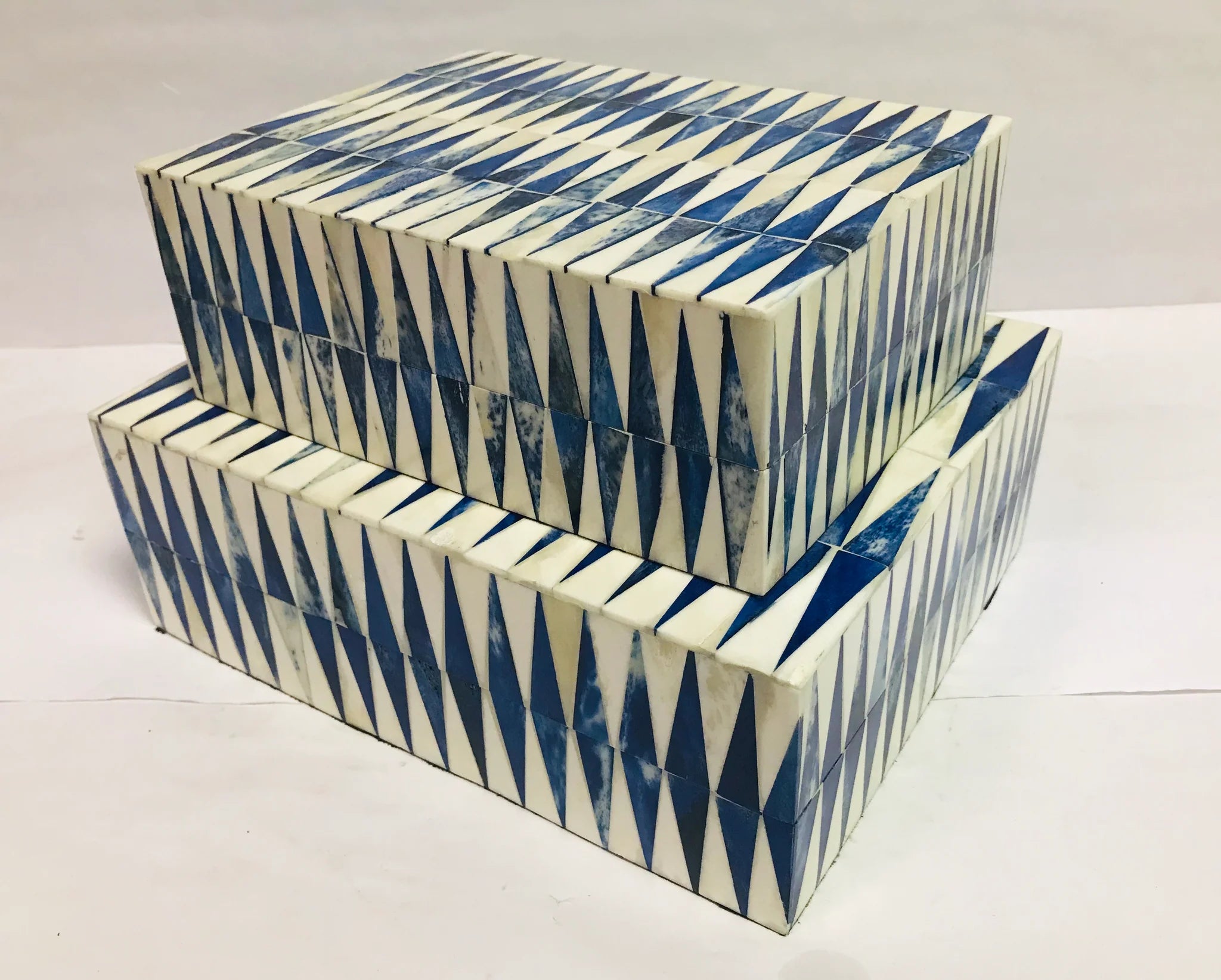 The Blue and White Bone Box by A. Sanoma is a handcrafted decorative accent that combines artisanal craftsmanship with everyday functionality. Made from natural bone, each box features a striking blue and white inlay pattern, making every piece unique. Perfect for storing jewelry, keys, remotes, or small essentials, it adds texture and elegance to bedrooms, living rooms, or offices. Stack multiple sizes together for a layered, curated look, or display individually to elevate any coffee table or bookshelf.