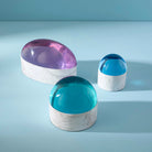 We’ve reimagined our bestselling Globo boxes with a soft, cool white marble base for an ultra chic alternative. Topped with pop toned acrylic lids, they impart a low key glam on any cocktail table, bedside surface, or powder room counter. Glowing gems on their own and even more intriguing when styled together. Available in three sizes.
