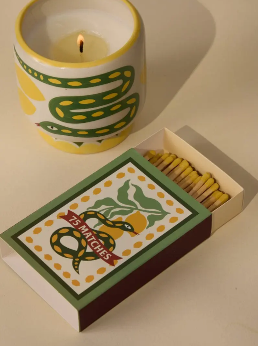 Say “See ya later!” with a playful twist. The A Dopo “Snake” 75 Count Boxed Matches are inspired by carefree Mediterranean adventures and a sunny, on-the-go attitude. Each whimsically illustrated matchbox contains 75 safety matches with color-coordinated tips, making them the perfect accessory to pair with your favorite A Dopo candle—or to keep on hand for a stylish, everyday spark.