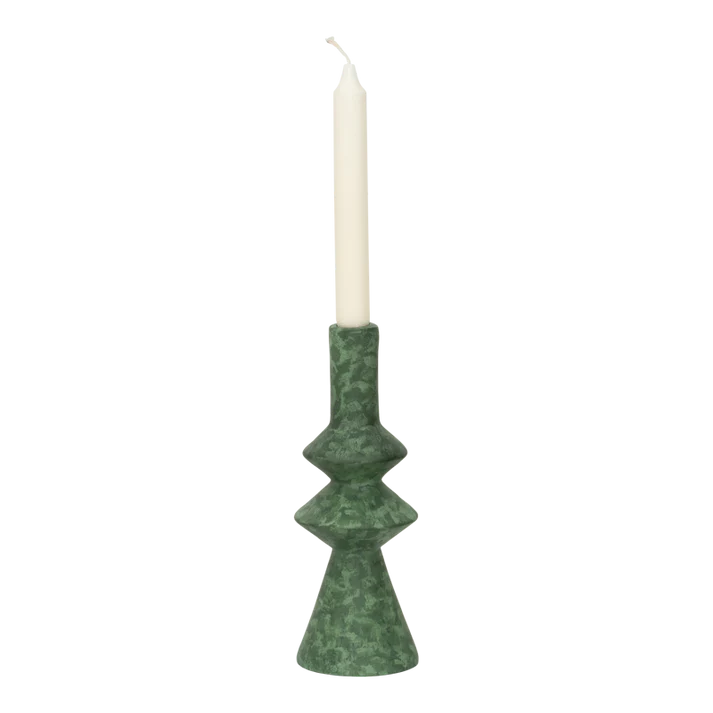 Geometry meets the organic, in Urban Nature Culture’s candle holder Mano B, made from the eco-friendly mixture of recycled paper pulp, natural gum and chalk powder – known as ecomix. Transformed into a timeless expressive design, carrying a matt, spotted green finish.