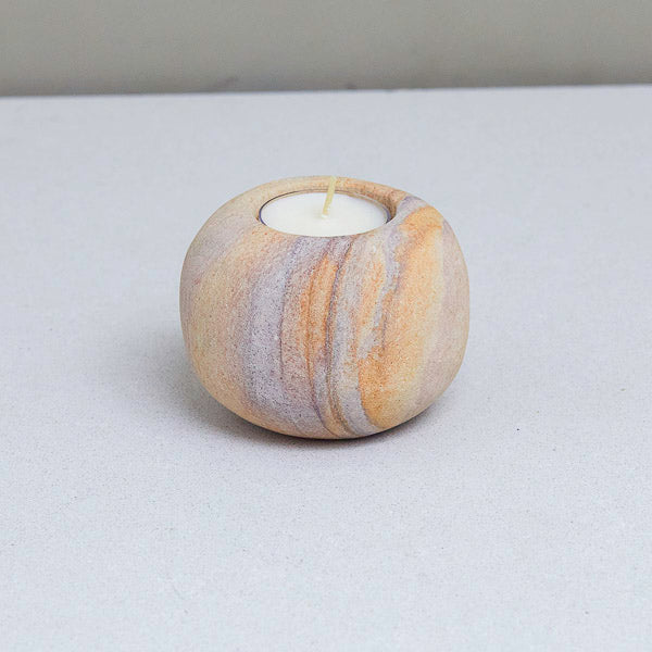 RAINBOW SANDSTONE PEBBLE CANDLEHOLDER, SMALL
