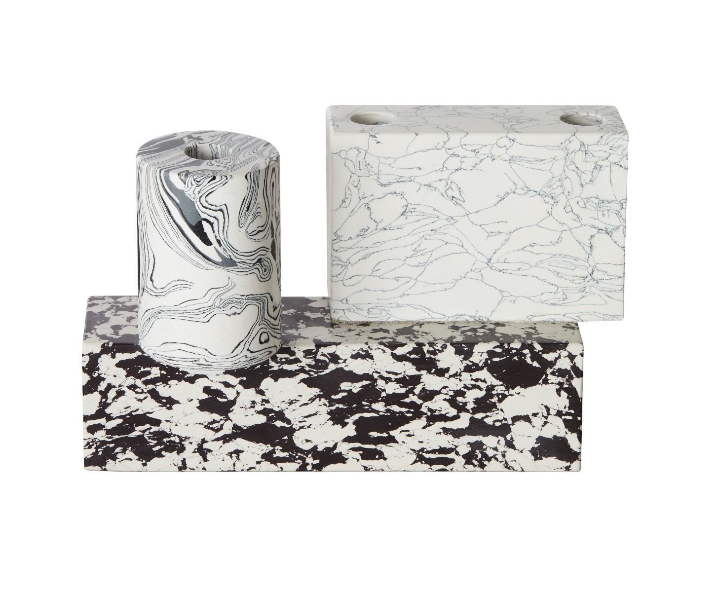 Swirl is a series of geometric forms stacked upon one another to create multi-dimensional, functional sculptures. The unique process involves recycling the powdered residue from the marble industry, mixed with pigment and resin to create blocks of material that can then be sawn, sliced and turned on a lathe. Substantial in weight, smooth in texture and bold in pattern, Swirl will inject a fresh pop sensibility into any setting.