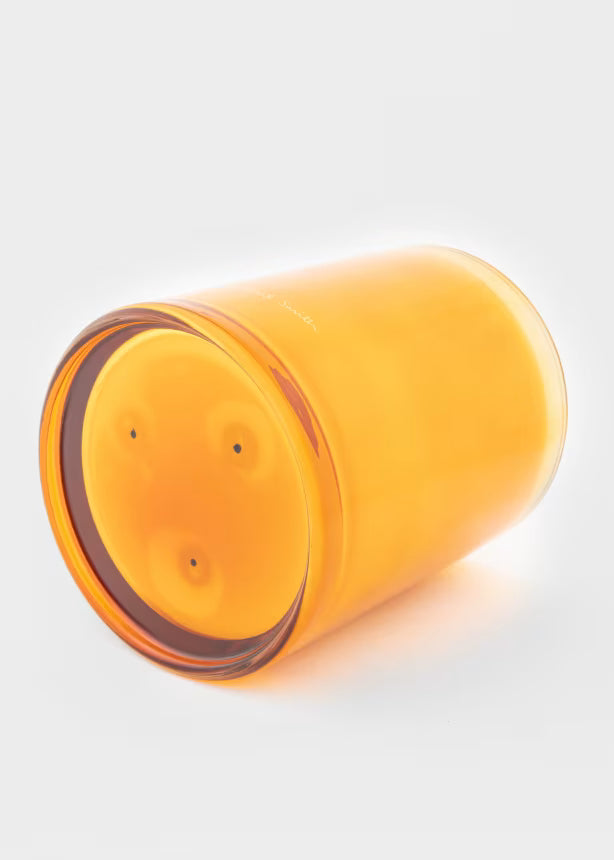 The Bookworm Candle (1000 g) by Paul Smith is a three-wick, hand-poured candle with a 120+ hour burn time, designed to fill large rooms with its exceptional fragrance. Featuring bright grapefruit, warm amber, spicy pimento, and grounding cedarwood, it delivers a sophisticated and inviting aroma. Housed in a tinted glass vessel with a contrasting lid that doubles as a coaster, the design reflects Paul Smith’s signature love of color and playful combinations. When lit, it catches the light beautifully, and once burned, the vessel can be reused as a pen holder, plant pot, vase, or for storing everyday essentials, combining style, functionality, and sustainability.