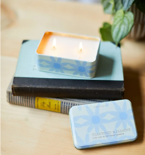 Add a touch of warmth and playful pattern to your space with the Everyday Tins – Teakwood & Jasmine. This 5 oz tin features two wicks for an even, radiant burn and a lively floral-inspired design to brighten any room. The fragrance opens with crisp bergamot and teak, unfolding into spicy-sweet notes of cinnamon, jasmine, and orange. A rich base of tobacco, amber, musk, and patchouli rounds out the scent for a cozy, uplifting everyday burn. Easy to stack, simple to store, and perfect for collecting, this cheerful tin brings a touch of charm to every day.