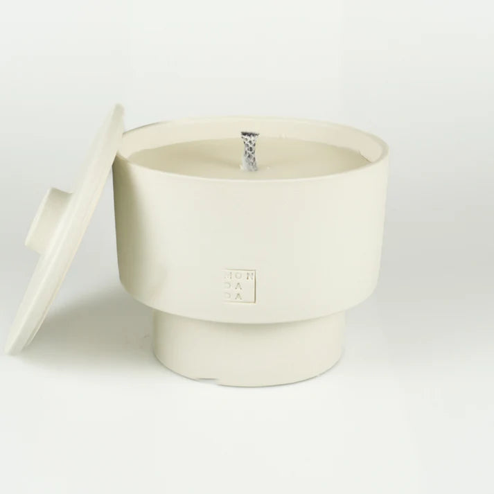 The Outdoor June Candle – Three, Dover Neutral with Lid by Mondada creates a warm, atmospheric glow for outdoor spaces with a refined, natural-inspired aesthetic. Featuring a soft Dover-neutral tone and a minimalist silhouette, it blends seamlessly into its surroundings, while the included lid preserves the candle between uses. Thoughtfully crafted to reflect Mondada’s signature raw elegance, this candle elevates terraces, patios, and evening gatherings with understated sophistication.