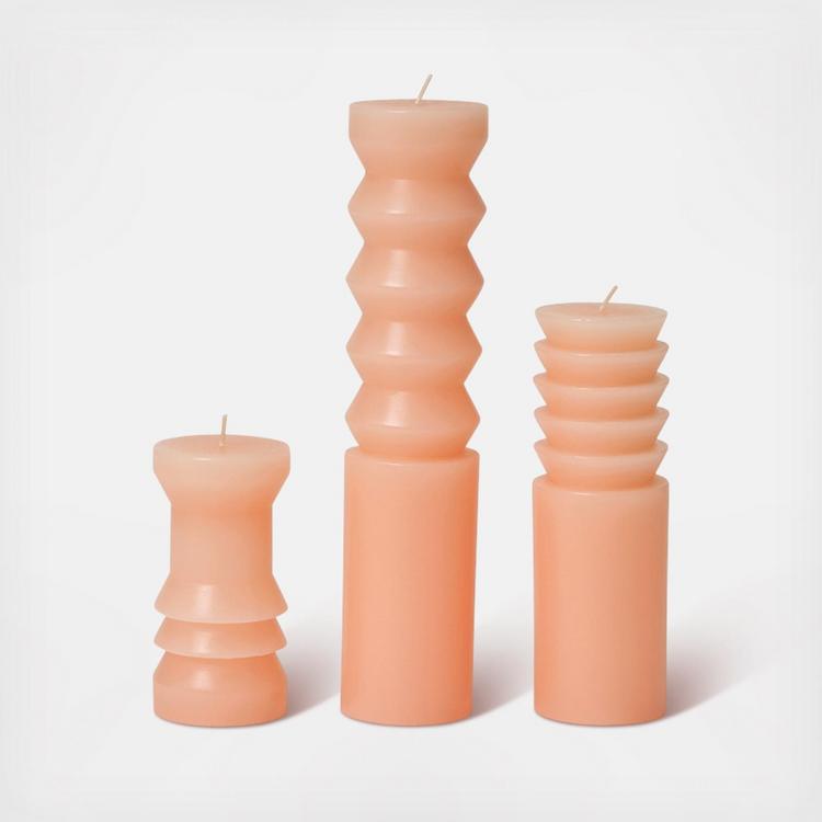 The Totem Candle Small – Blush transforms a simple taper into a refined sculptural form. Cast in unscented paraffin wax from lathe‑turned beeswax molds, this petite version features a soft blush tone that adds subtle charm to any decor. Each candle stands upright like a small artwork, offering both ambient glow and minimalist design elegance.