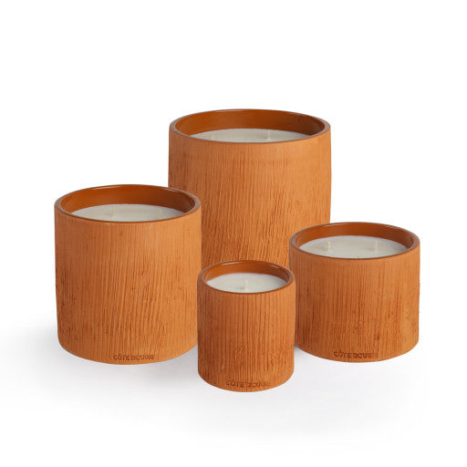 The striated terracotta collection, with its warm, earthy lines, evokes the authenticity of Morocco. Its rich, enveloping amber fragrance diffuses deep, sensual notes for an unforgettable olfactory experience. Featuring our Ambre Mandarine scent in size medium.
