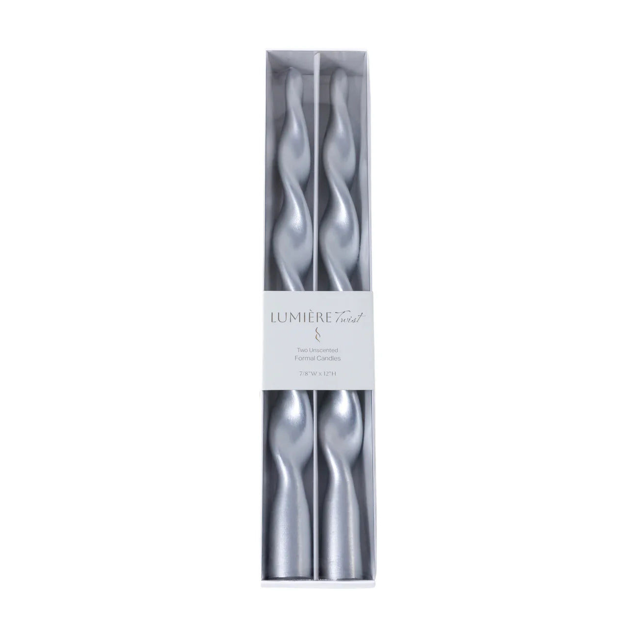 SET OF 2 METALLIC TWISTED TAPER CANDLE 12" H SIL