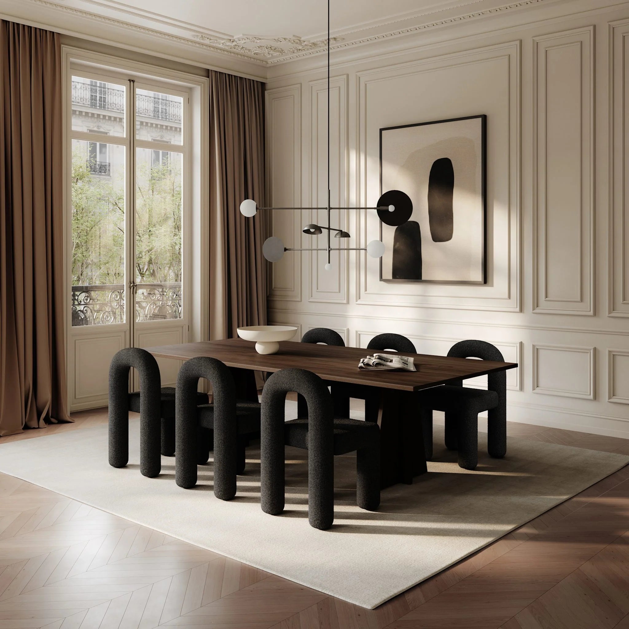 With a warm white interior for a soft glow, and finishes that range from modern polish to rich texture, the Sahn blends versatility with bold aesthetics. Its name, meaning "three" in Japanese, reflects the trio of shades that bring movement and playful elegance to this distinctive fixture.