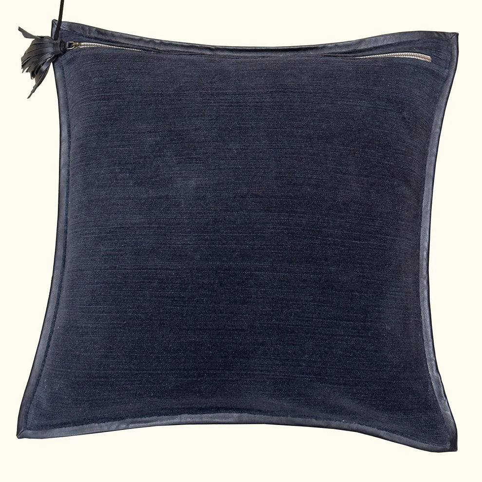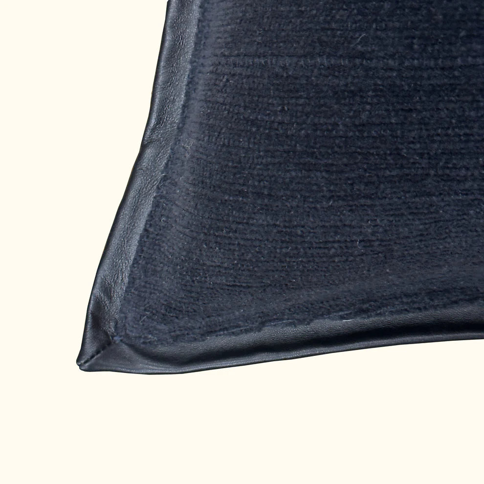 The Leather Frame Pillow (22" x 22") in Black by Threads Soft Goods combines sleek sophistication with tactile appeal. Crafted from soft, durable fabric with a leather-inspired frame detail, it adds a bold, modern accent to sofas, chairs, or beds. Versatile and stylish, this pillow elevates any décor with contemporary edge and texture.