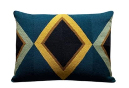The RIVIERA cushion is a geometric composition of diamonds framed in several colors. Entirely hand-embroidered in chain stitch, a RIVIERA cushion requires 4 days of hand embroidery.