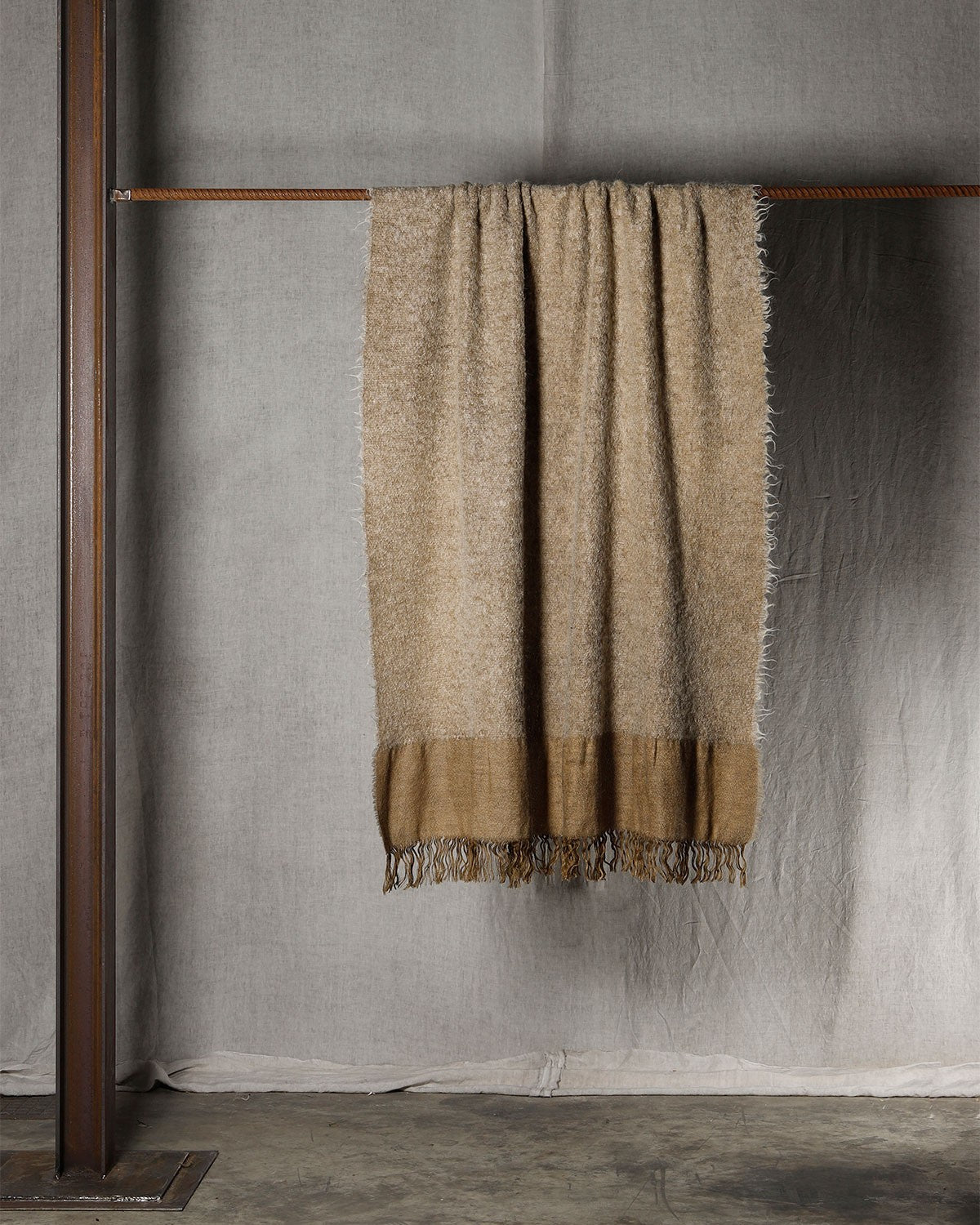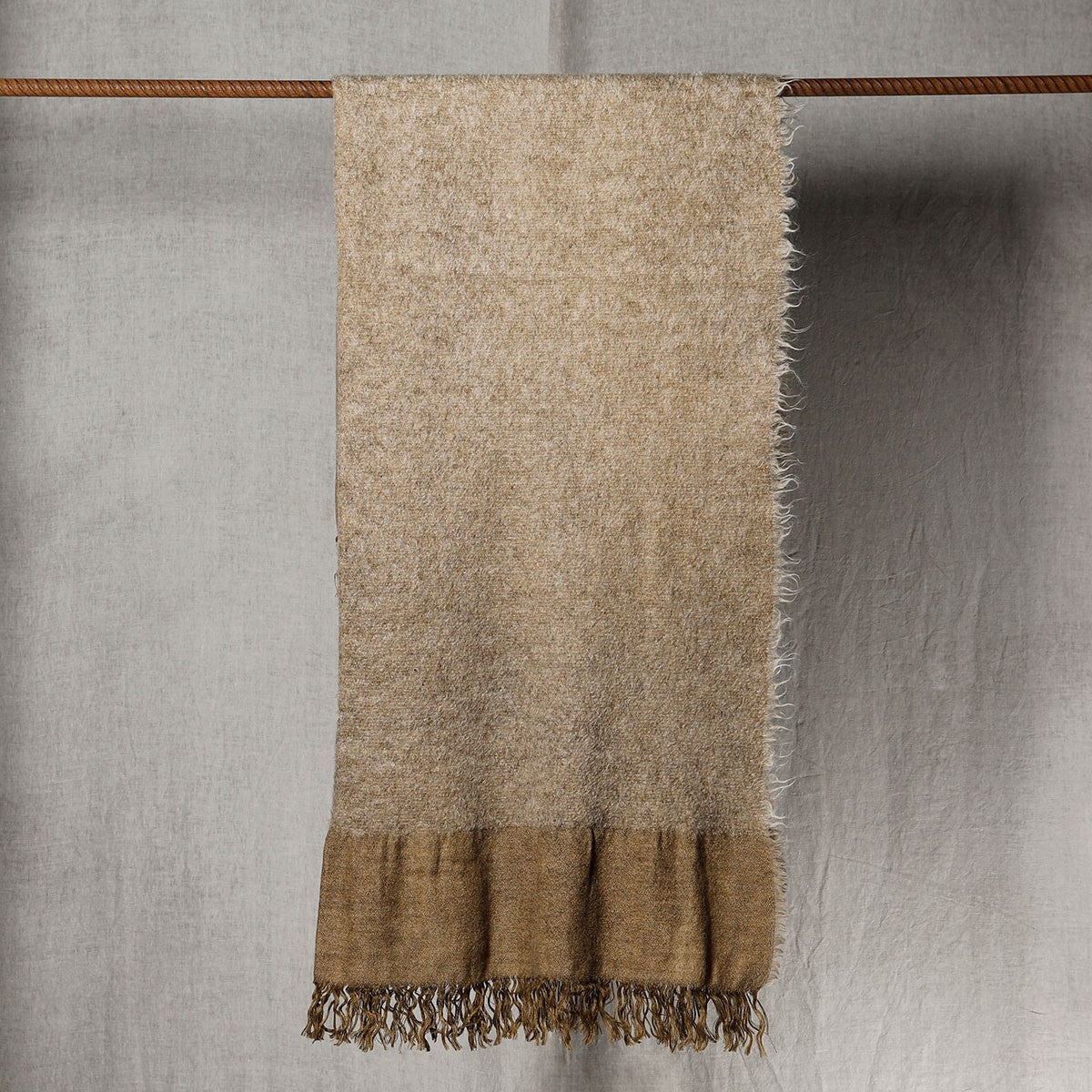 The ROVERE features a rich expanse of bouclé alpaca, framed by an intentionally irregular linen flounce that evokes the strength and resilience of wood. Its tactile contrast and organic detailing bring a grounded elegance to any space—natural, refined, and quietly bold.