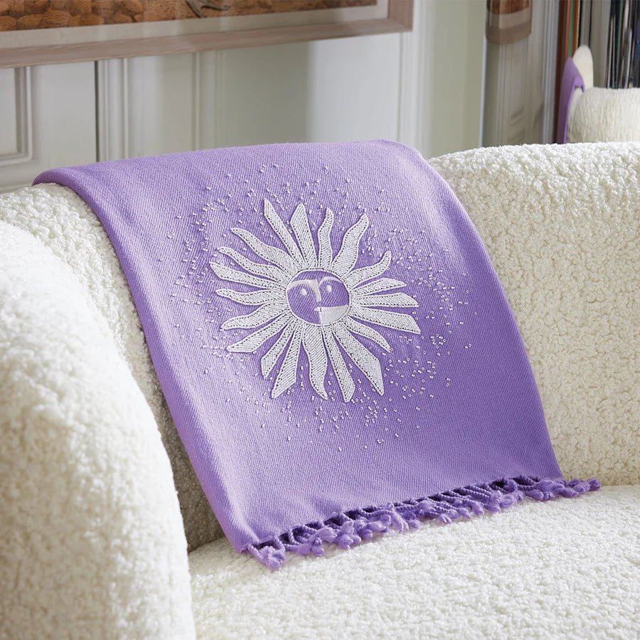 Hand-embroidered by artisans, our Sun Embellished Throw features a shimmering sun rendered in glittering beads. A plush piece of couture craft, this cozy essential is crafted in an unbelievably soft and luxurious wool blend—just the eye-catching accent your abode deserves.