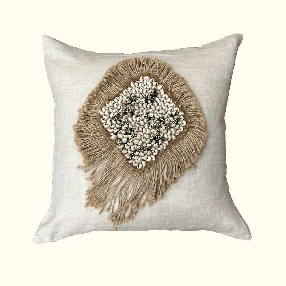 LEATHER WEAVE 22X22 IVORY PILLOW