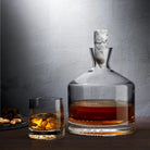 With its name derived from the Gaelic word meaning Scotland, the NUDE Alba set pays tribute to the spiritual home of whisky. Sleek and modern, the crystalline bottle features a hand engraved, deconstructed tartan pattern adorning the base and a circular stopper, which gently tilts in the conical neck — an invitation to keep it pointing towards Scotland. It is paired with two whisky glasses characterised by a heavy-bottomed, tapered silhouette and the matching tartan motif.