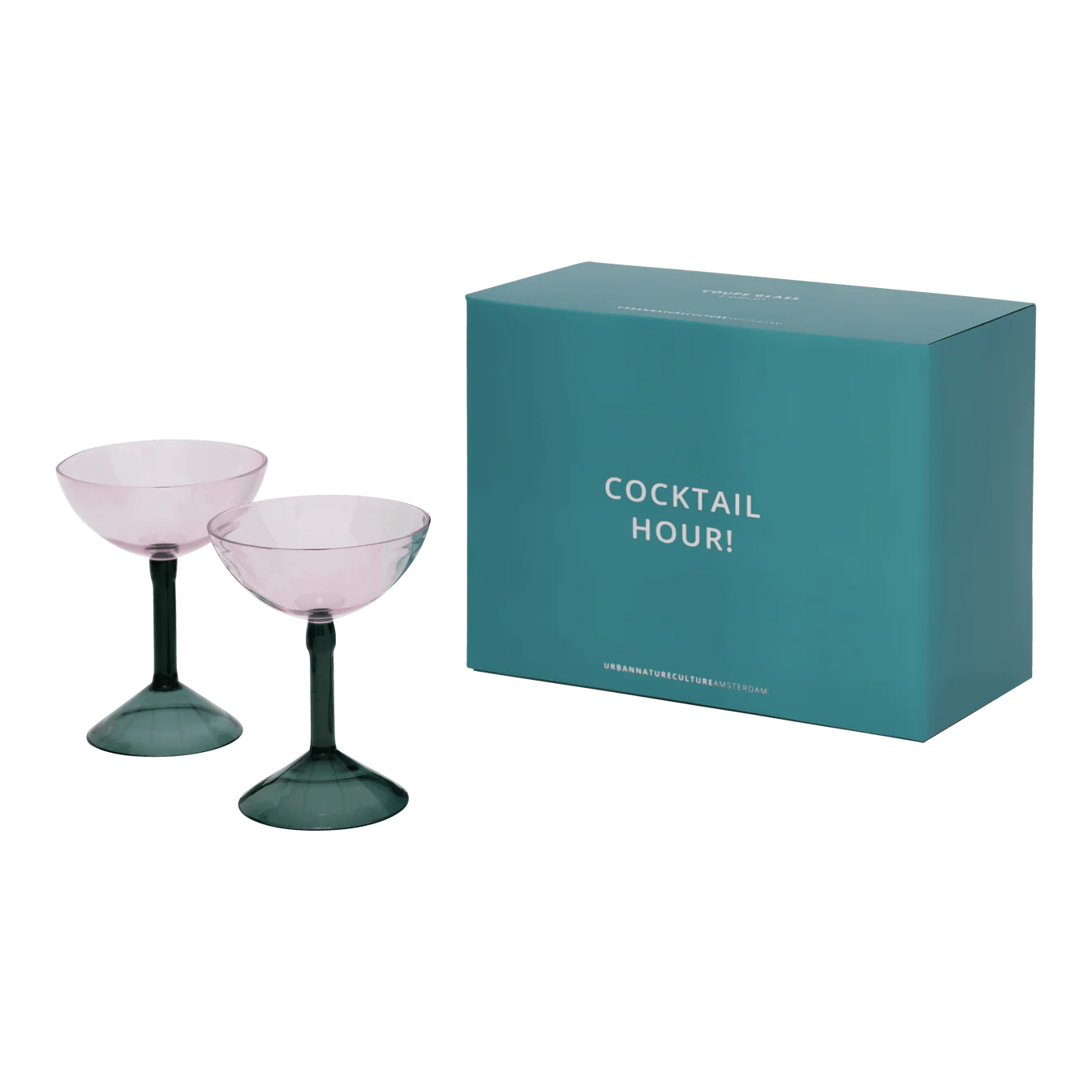 Cocktail hour has kicked off at Urban Nature Culture! As an exclusive design for Urban Nature Culture’s Fall & Winter 2024 collection, the Amsterdam based company brings a brand new series of 4 different cocktail glasses. All four of them unique, in their own, classic shape – perfectly matching the drinks you’re serving. The coupe cocktail glass has round edges to a geometric design and rocks a beautiful shade of pink. It serves you and your guests a delicious martini – whether that’s an espresso martini, pornstar martini or dirty martini. This borosilicate glass adds a colourful accent to every dinner party, cocktail party or celebration. UNC presents the cocktail glasses in a special, celebratory giftbox as a set of 2, including a recipe card for cocktails - to create your own. A great giveaway for the holiday season or as a housewarming gift. Mix it up, serve and enjoy happy hour at home.