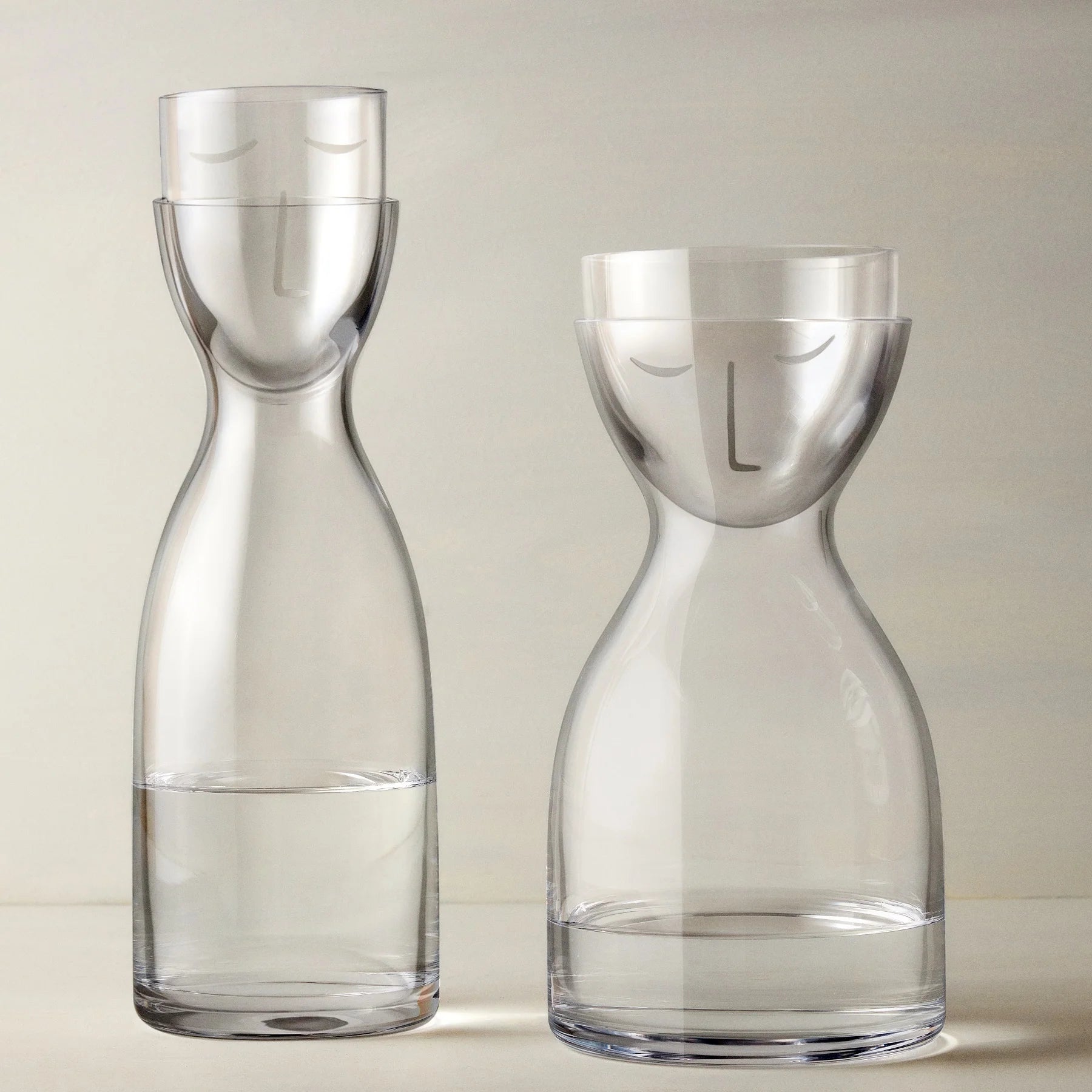 Minimally-shaped, the NUDE Mr.&Mrs. bedside water set takes on its own unique personality, thanks to the sleeping face motif adorning the complementary cup, which also doubles up as a bottle stopper. Crafted from fine crystalline glass, the tall silhouette will add a touch of elegance to any table.