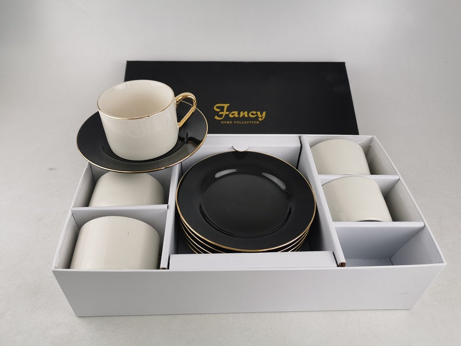 S/6 BOXES 6 TEA CUPS BLACK/WHITE