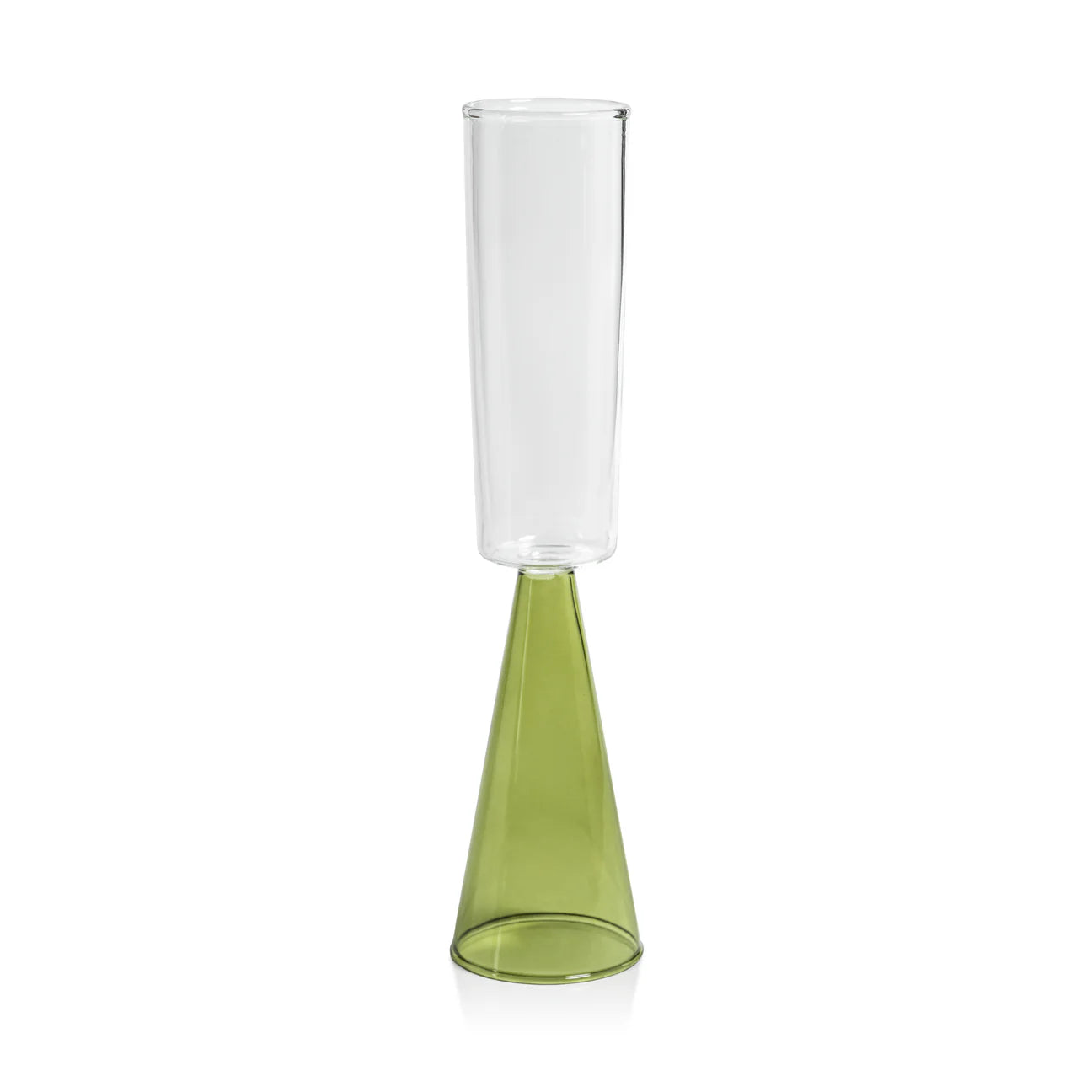 Toast with style using the Zodax Veneto Green Champagne Flute, a fresh take on classic celebration glassware. Featuring a slender, clear bowl atop a vibrant green base, this flute brings a lively, modern edge to any occasion. Perfect for champagne, prosecco, or sparkling cocktails, it adds a festive pop of color and elegance to your drinkware collection.