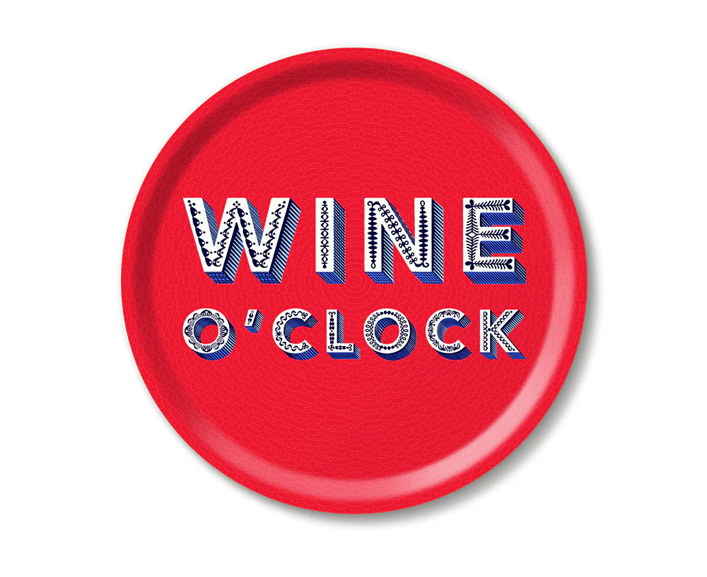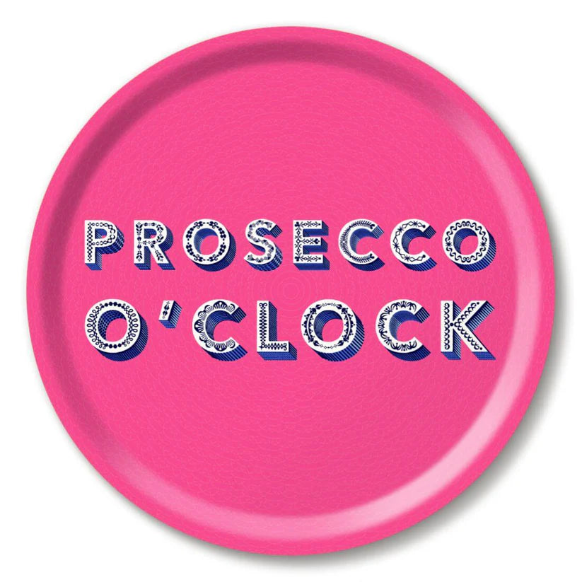 PROSECCO O CLOCK BRIGHT PINK ROUND TRAY