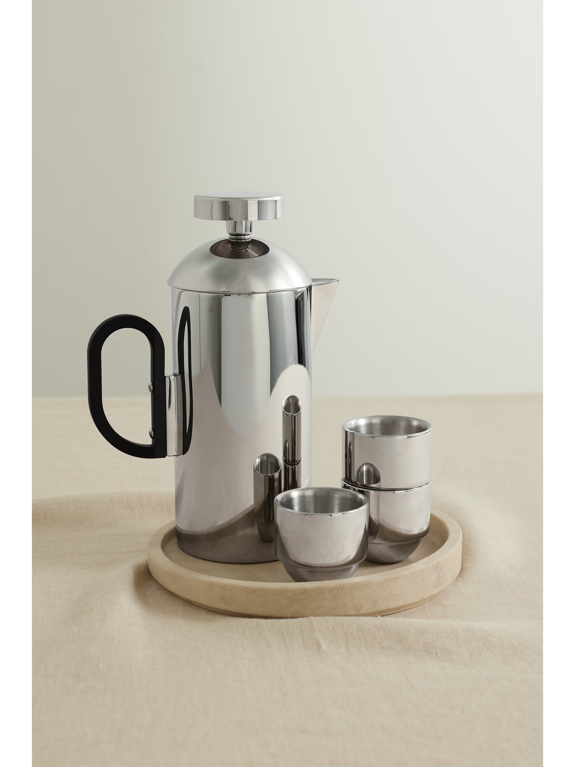 The Brew Cafetière by Tom Dixon is a modern reinterpretation of a classic coffee-making ritual, blending functional precision with sculptural elegance. Crafted from high-quality materials, its sleek, minimalist silhouette features clean lines and a balanced form that feels as good in the hand as it looks on the table. Designed for effortless brewing, the Brew Cafetière transforms everyday coffee preparation into a tactile and visually striking experience. Functional, refined, and thoughtfully engineered, it brings contemporary sophistication and understated style to any kitchen or dining setting.