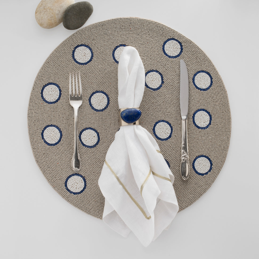 GILT EDGE SHELL NAPKIN RINGS, LAPIS LAZULI, SET OF 2
