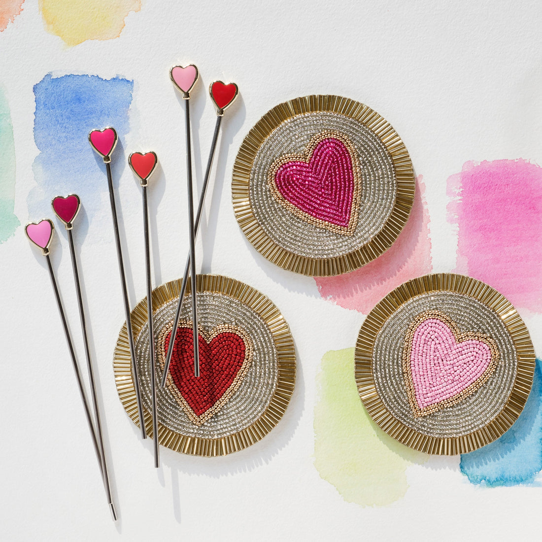 The Heart Coasters by Joanna Buchanan bring a charming and whimsical touch to any tabletop. Each coaster is thoughtfully designed in a classic heart shape, crafted with durable materials and accented with elegant detailing for a polished finish. Perfect for protecting surfaces while adding a playful yet sophisticated element to your entertaining, they work beautifully for everyday use or special occasions. Sold as a set, these coasters combine practicality with stylish design, making every drink feel thoughtfully presented.