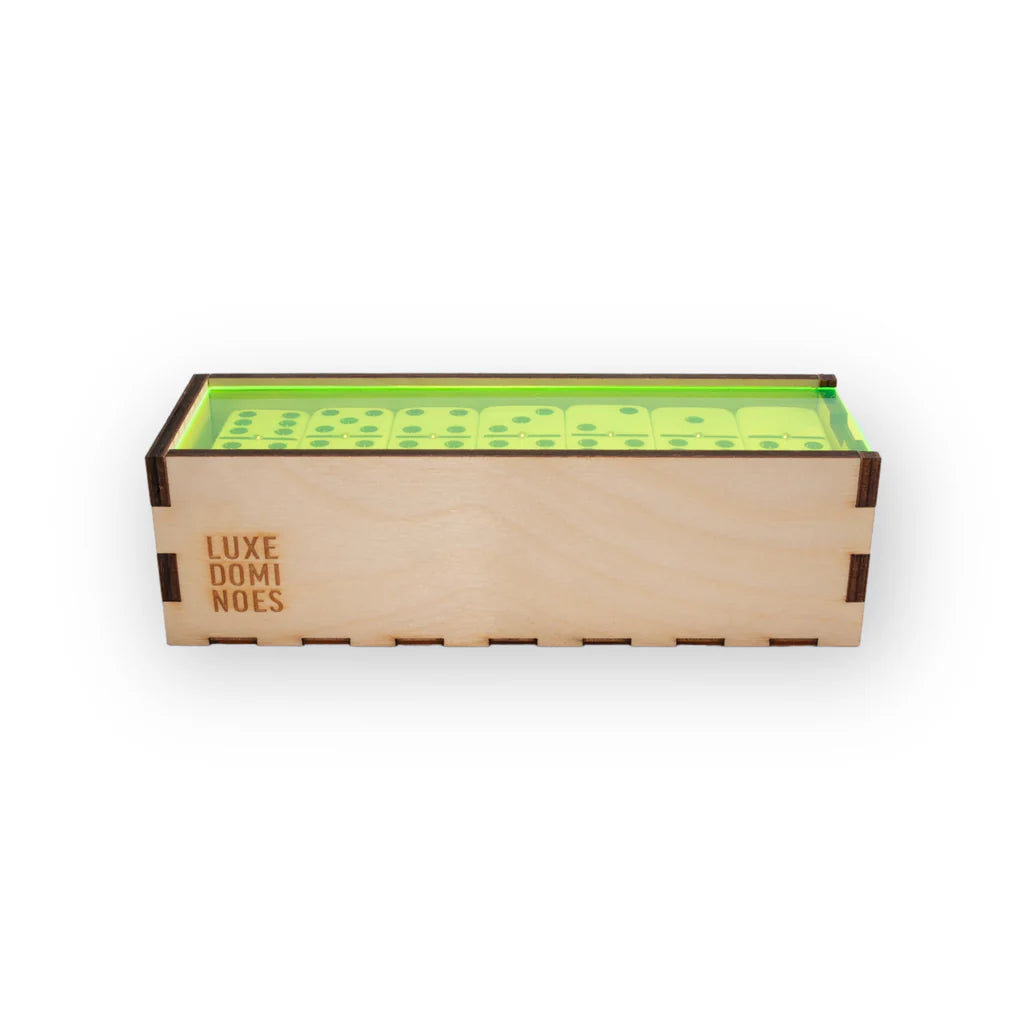 This Double 6 Domino Set in wooden box combined with a pop of color for the lid will brighten any coffee table or game room. Choose from a wide range of colors and color domino tiles.
