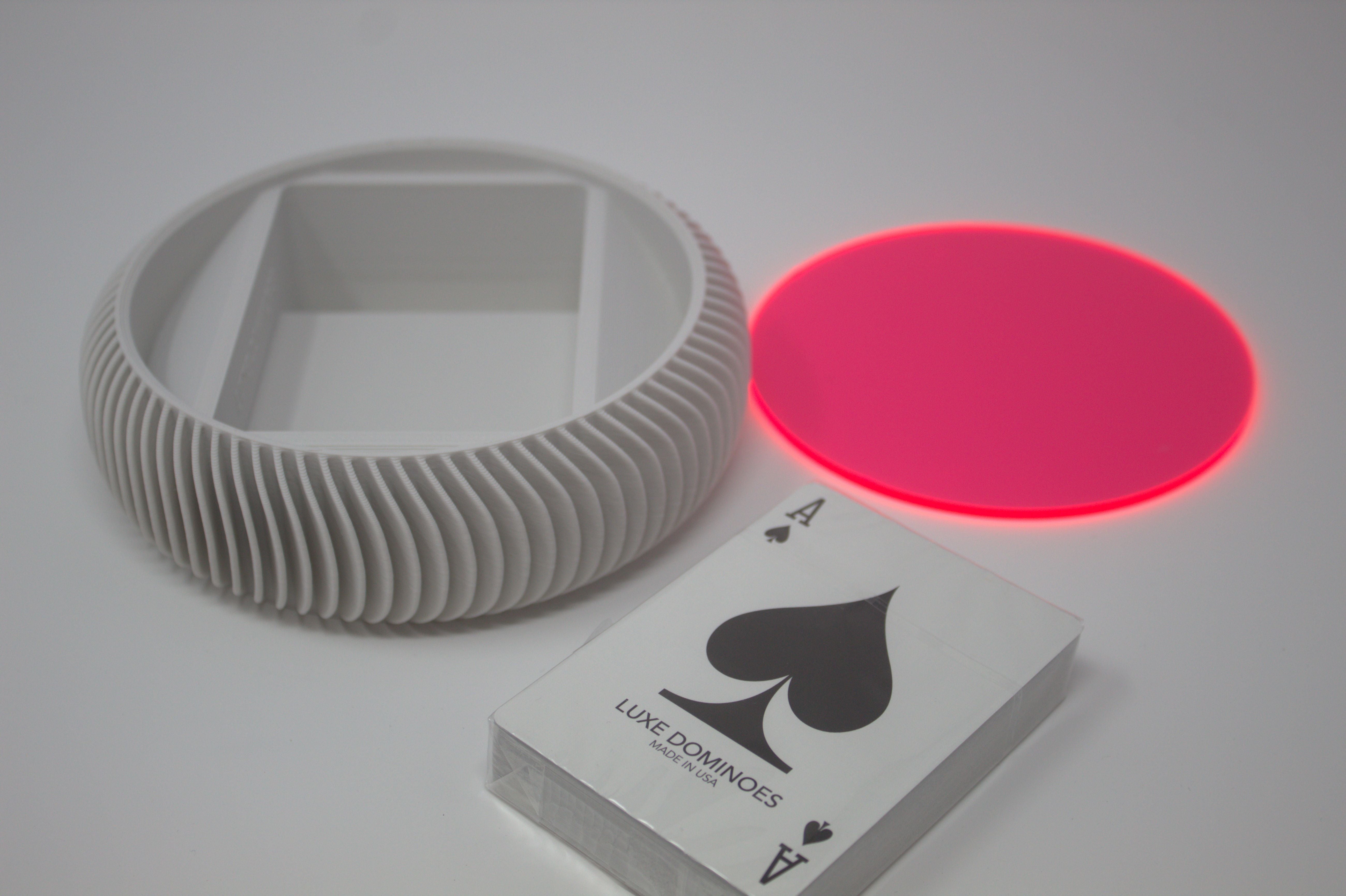 Luxe Dominoes’ La Redonda Cards in White and Neon Pink reimagine traditional gameplay with a fresh, modern edge. Their circular design and striking color contrast make them as much a design statement as a game essential. Durable, playful, and undeniably bold, this set transforms any gathering into a vibrant and stylish experience.
