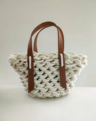 The Bella Mini in White Rope & Caramel Leather is a refined, sculptural accessory that merges artisanal craftsmanship with modern elegance. Handwoven from soft, sustainable cotton cords, its textured white rope body is complemented by smooth caramel leather accents, creating a sophisticated, versatile contrast. Compact yet functional, the Bella Mini transitions effortlessly from day to evening, embodying both style and practicality. This piece highlights Alienina’s commitment to sustainable materials, timeless design, and thoughtfully handcrafted accessories.