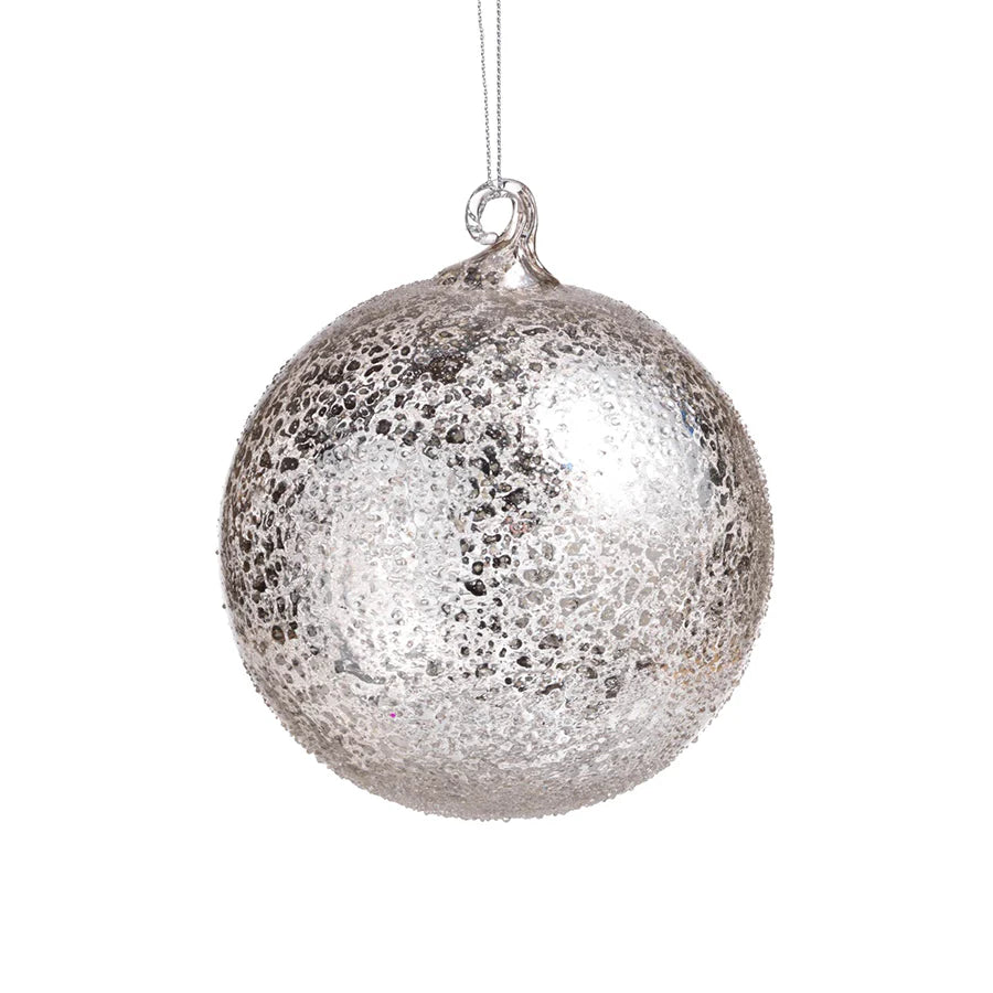 SILVER BEADED GLASS BALL ORNAMENT,4.75"