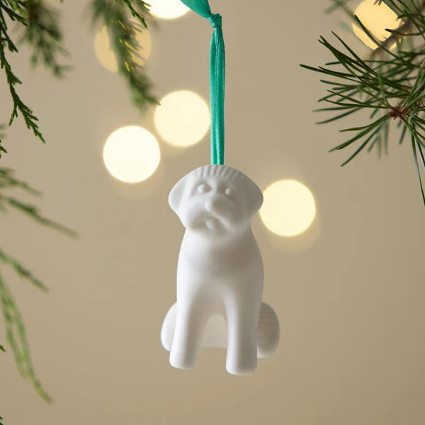 Jonathan Adler Doodle Ornament in White. Jonathan Adler Doodle Ornament in White. Deck your halls with Jonathan Adler's annual assortment of wildly collectible Menagerie ornaments. Handcrafted from high fire porcelain in a smooth matte finish with a satin ribbon tie, each piece pops against your evergreen trees and wreaths. Packaged in a fetching and festive box, perfect for gifting (and storing).. High-fired unglazed porcelain.
