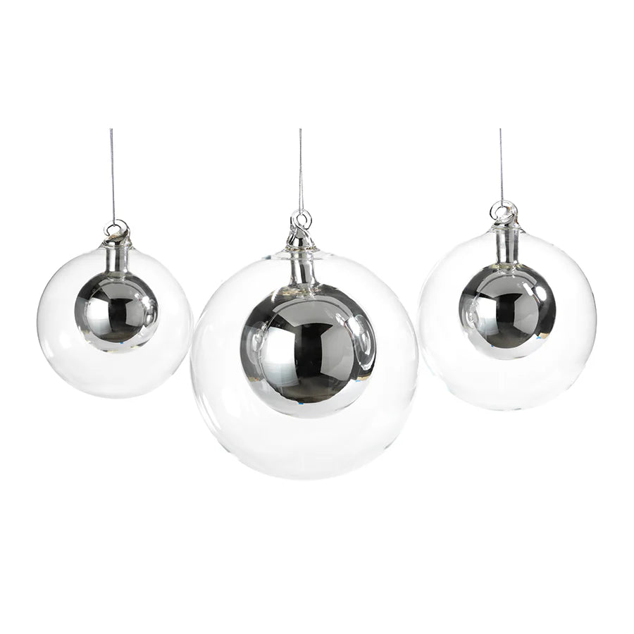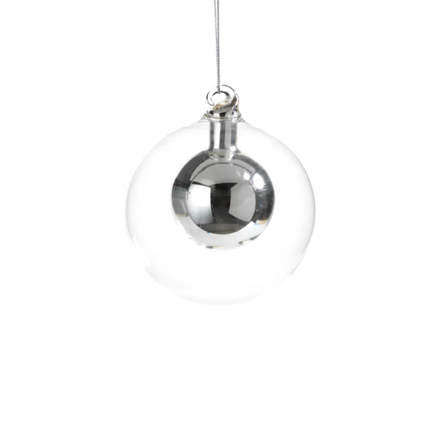 DOUBLE GLASS BALL ORNAMENT- SILVER/ SMALL