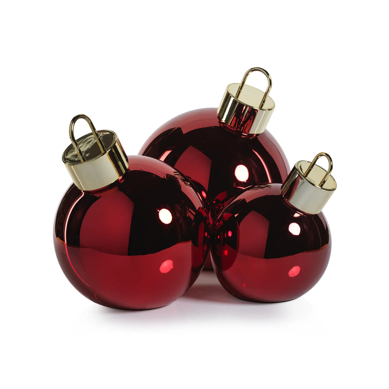 The LED Metallic Glass Oversized Ball – Red (9.75") is a bold and luminous holiday accent. Crafted from metallic red glass with integrated LED lighting, it creates a warm, radiant glow that enhances Christmas trees, garlands, or festive tabletop displays. Its generous size makes it a statement piece, and it pairs beautifully with smaller and larger versions for a layered, eye-catching holiday arrangement.