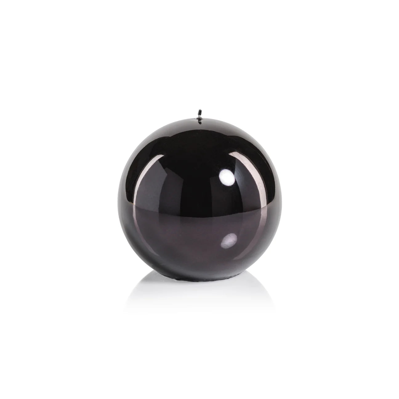 METALLIC BALL CANDLE- MATTE PEARL BLACK-6"