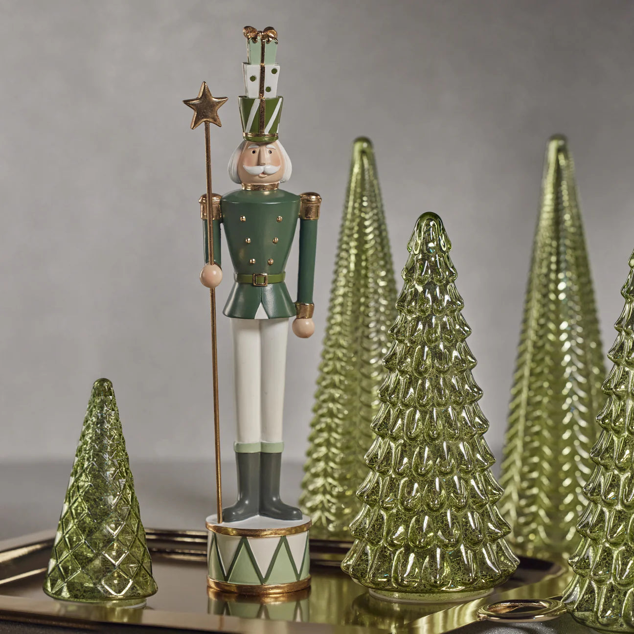 The Nutcracker Soldier with Star (18") is a festive holiday accent that combines classic nutcracker charm with seasonal detailing. Featuring a decorative star and rich, traditional colors, this soldier stands out on mantels, entryways, or as part of a layered holiday display. Perfect as a collectible or statement piece, it adds whimsy, tradition, and cheerful holiday spirit to any décor.
