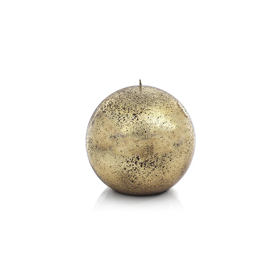 SHINY METALLIC BALL CANDLE- ANTIQUE GOLD/6"