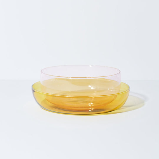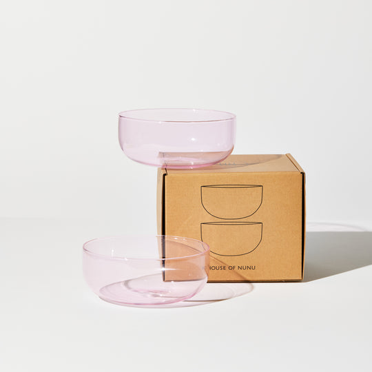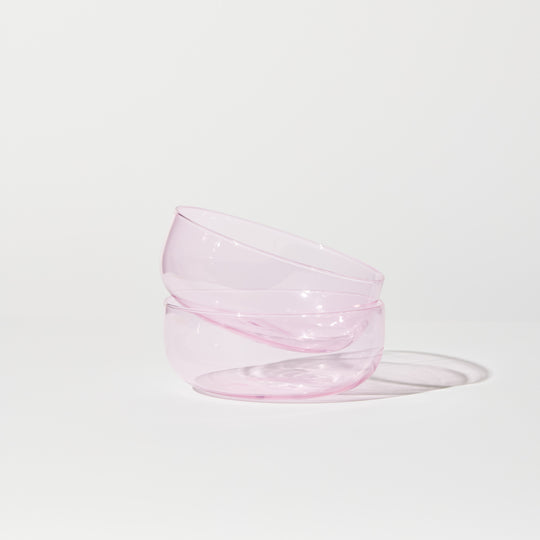 The Abracadabra Bowls in Pink come as a set of two, each hand-blown from 100% borosilicate glass for a distinctive, one-of-a-kind look. Heat- and cold-resistant, they’re perfect for everyday meals or special occasions, with natural variations in shape and color adding to their unique charm. Dishwasher safe, though hand washing is recommended to ensure lasting use.