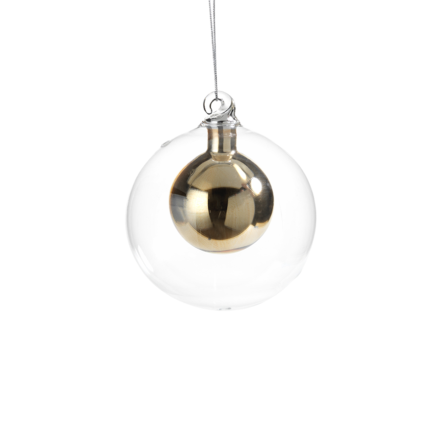 DOUBLE GLASS BALL ORNAMENT - GOLD - SMALL
