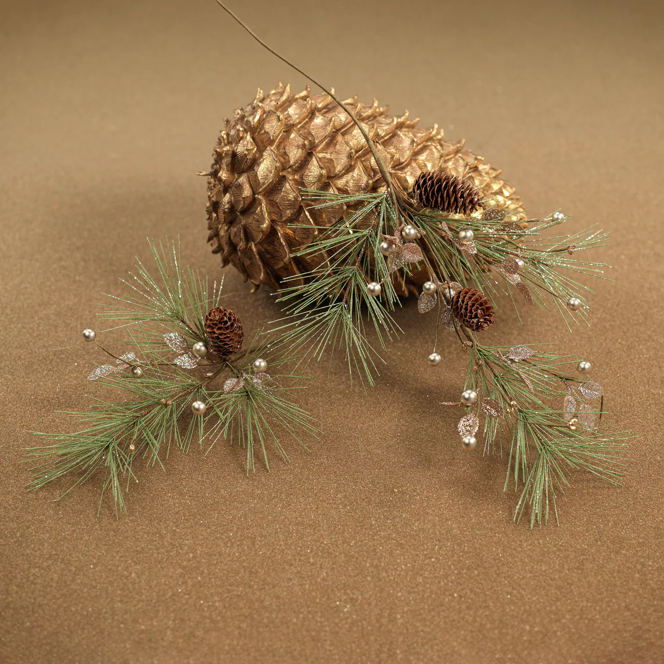 The Zodax Needle Pine Tree with Glitter (Small) features lifelike, fine green needles dusted in shimmering glitter for a delicate sparkle. Its slim, natural silhouette makes it ideal for tabletop arrangements, wreaths, or vase displays. Elegant and festive, this piece adds a subtle touch of holiday magic to any space.