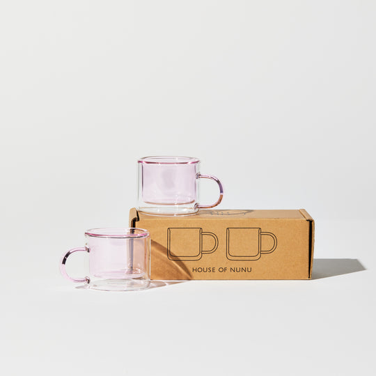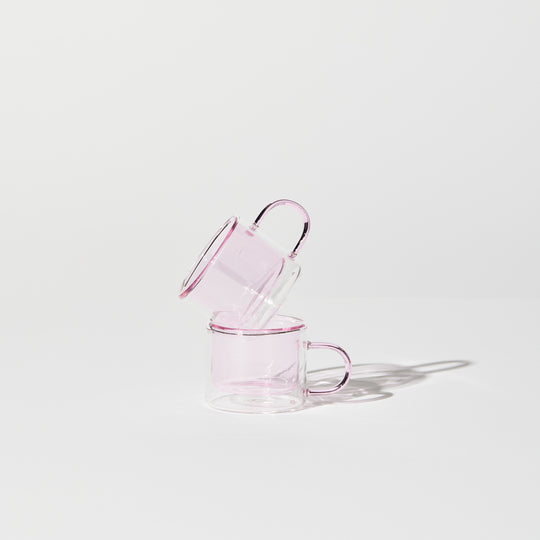 The Set of 2 Glass Espresso Cups in Pink combines style and practicality in a compact design. Made from heat-resistant borosilicate glass with a durable double-wall construction, they keep your espresso perfectly insulated while remaining comfortable to hold.