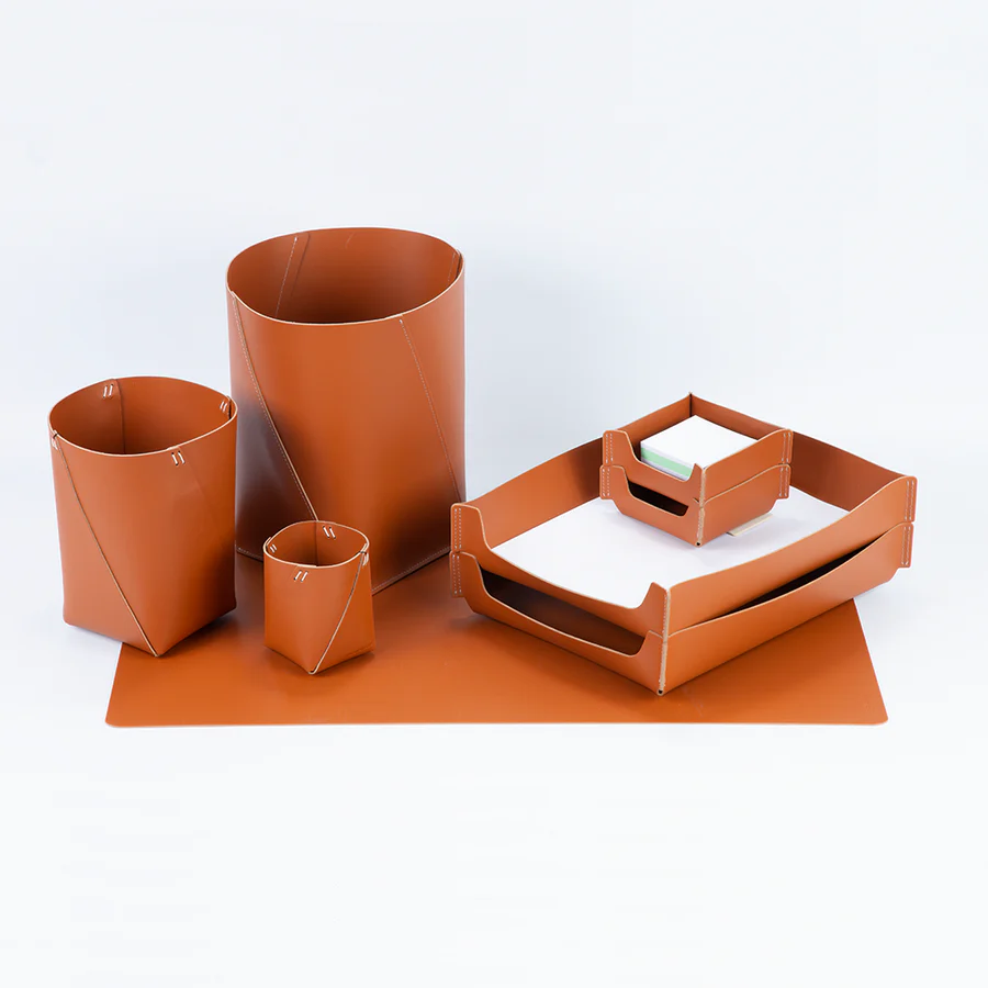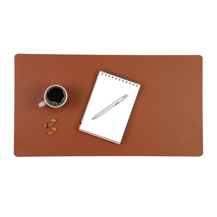 Wide desktop pad. Sober and stylish. Useful both for the office and at home. Made with 100% recycled leather. Sustainable and durable design.