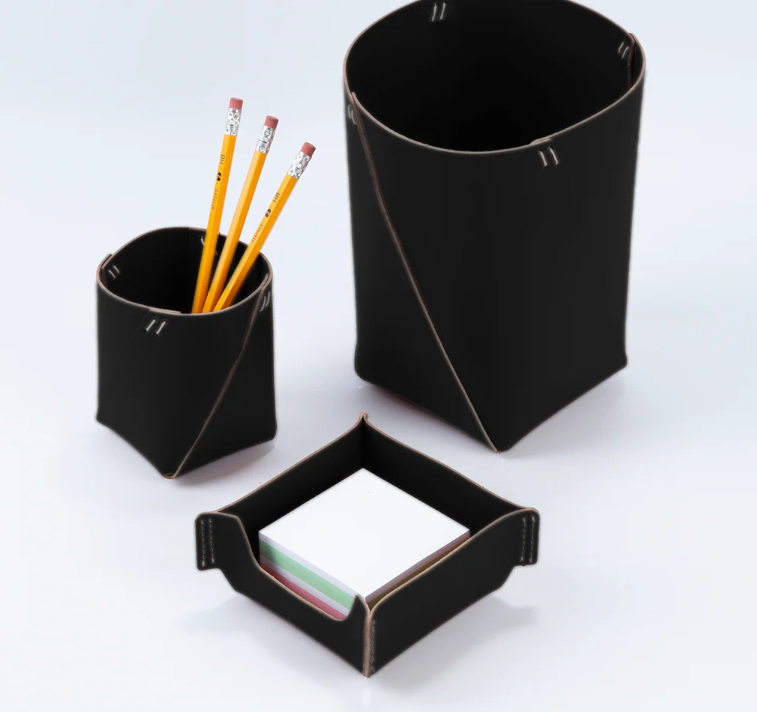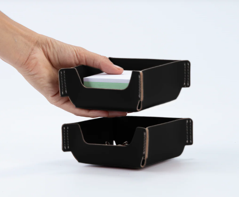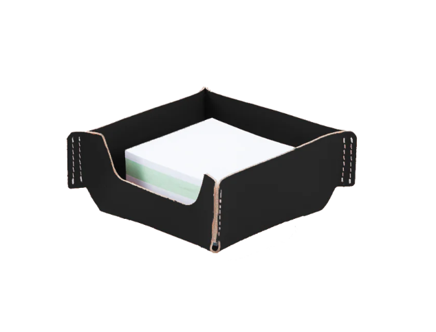 Stackable Note Holder, sober and elegant. It can be used both at home and in the office. Handmade details. Easy to clean. Made with 100% recycled leather. Sustainable and durable design.